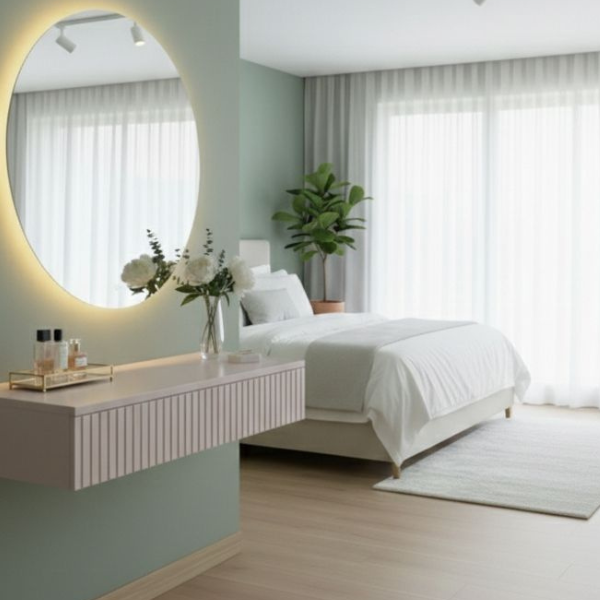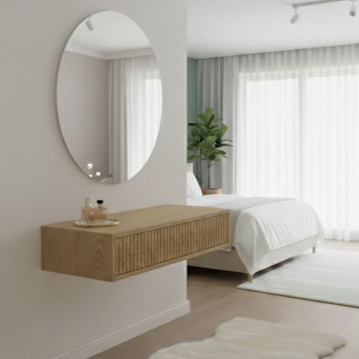 שידת איפור מרחפת בעיצוב מודרני ונקי, בייצור אישי לפי בחירה.