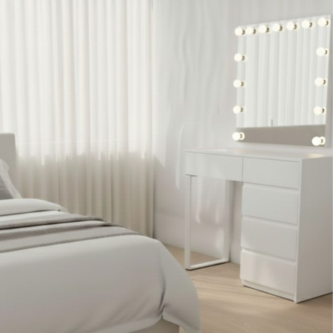פתרון מושלם למי שרוצה שידת איפור מרשימה שלא תופסת מקום מיותר – אידאלית גם לחללים קטנים יותר.